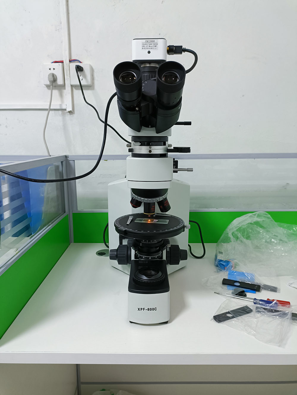 中化地質(zhì)礦山總局河南地質(zhì)局透反射偏光顯微鏡XPF-800C調(diào)試現(xiàn)場。