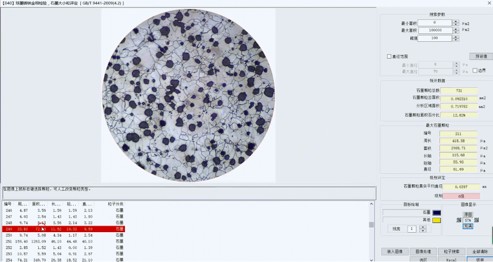 1、自動(dòng)評(píng)級(jí)金相分析功能: